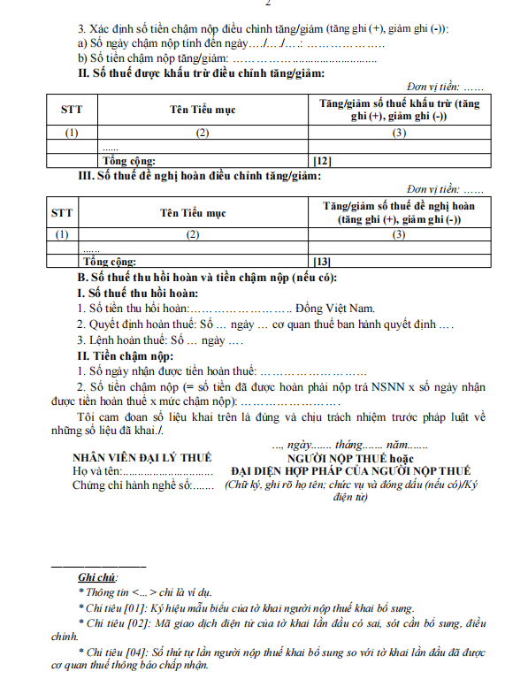III. Phương pháp khai bổ sung thuế cho hộ kinh doanh